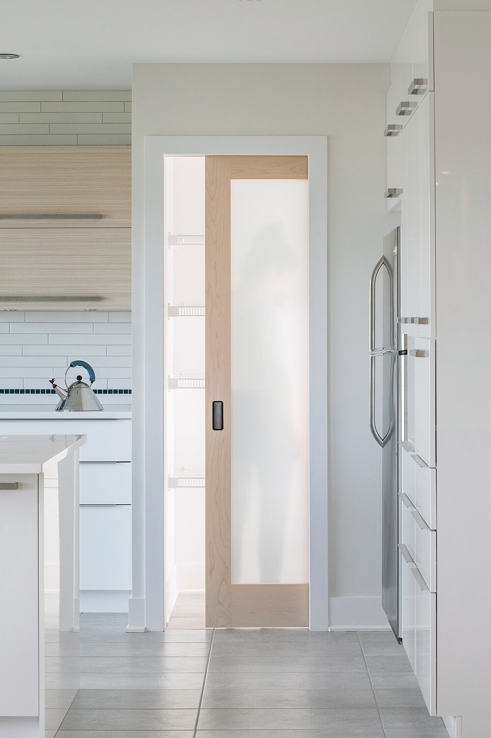 Glass panel door, with Shaker style frame. Choice of glass or stained glass. Available in 5 wood species or white primer. Non-standard species and heights on request.