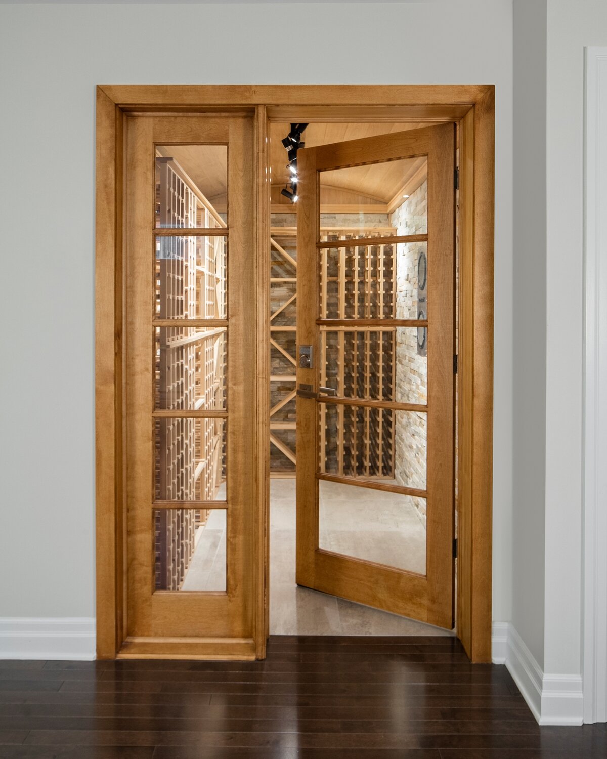 Model with 5 glazed panels, straight head with standard frame. Also available with a choice of heads: curved, Napoleon or arched.