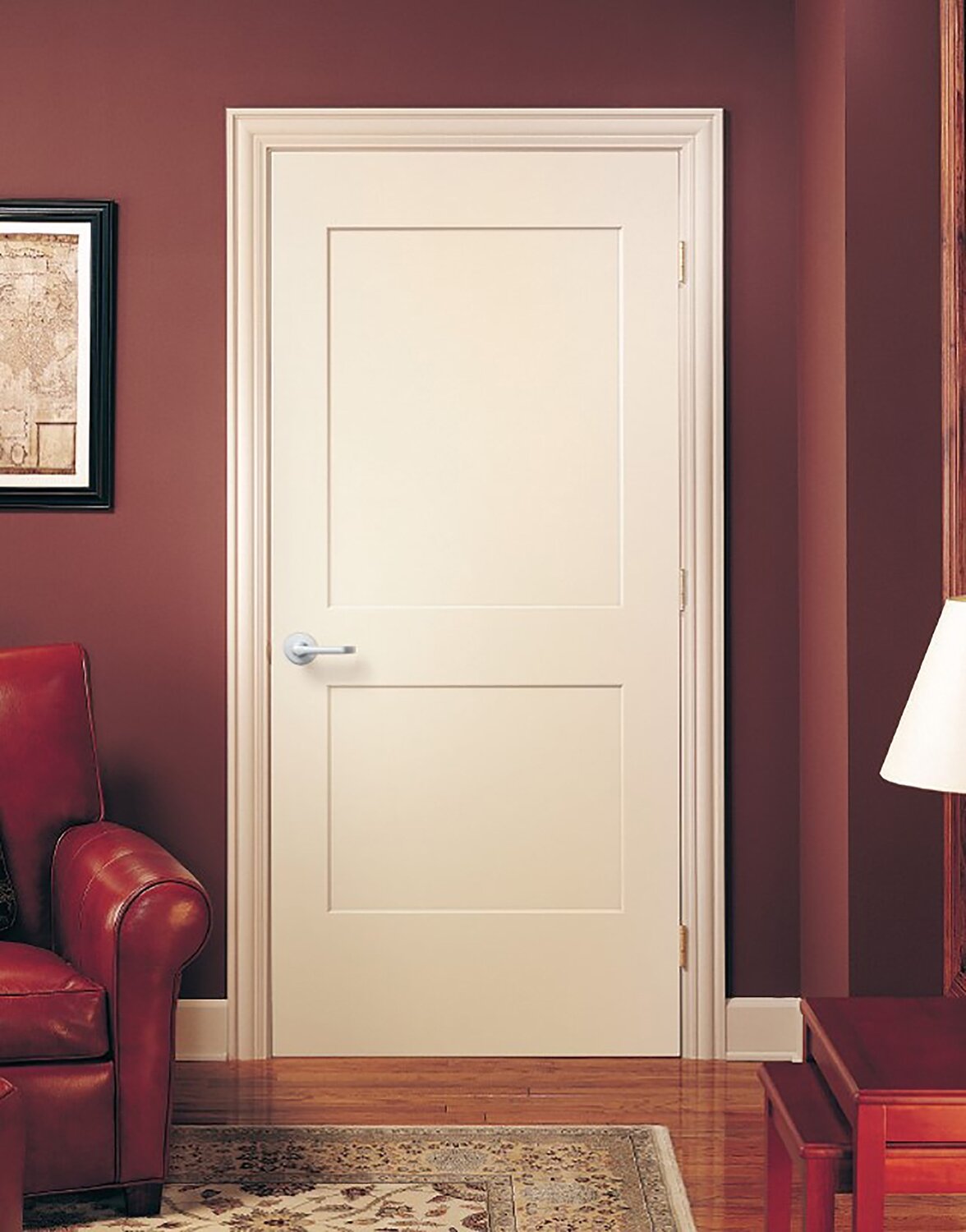 Porte à panneaux, de style Shaker. Surface lisse, prépeinte. Hauteurs non standards offertes sur demande. Version pliante disponible.
