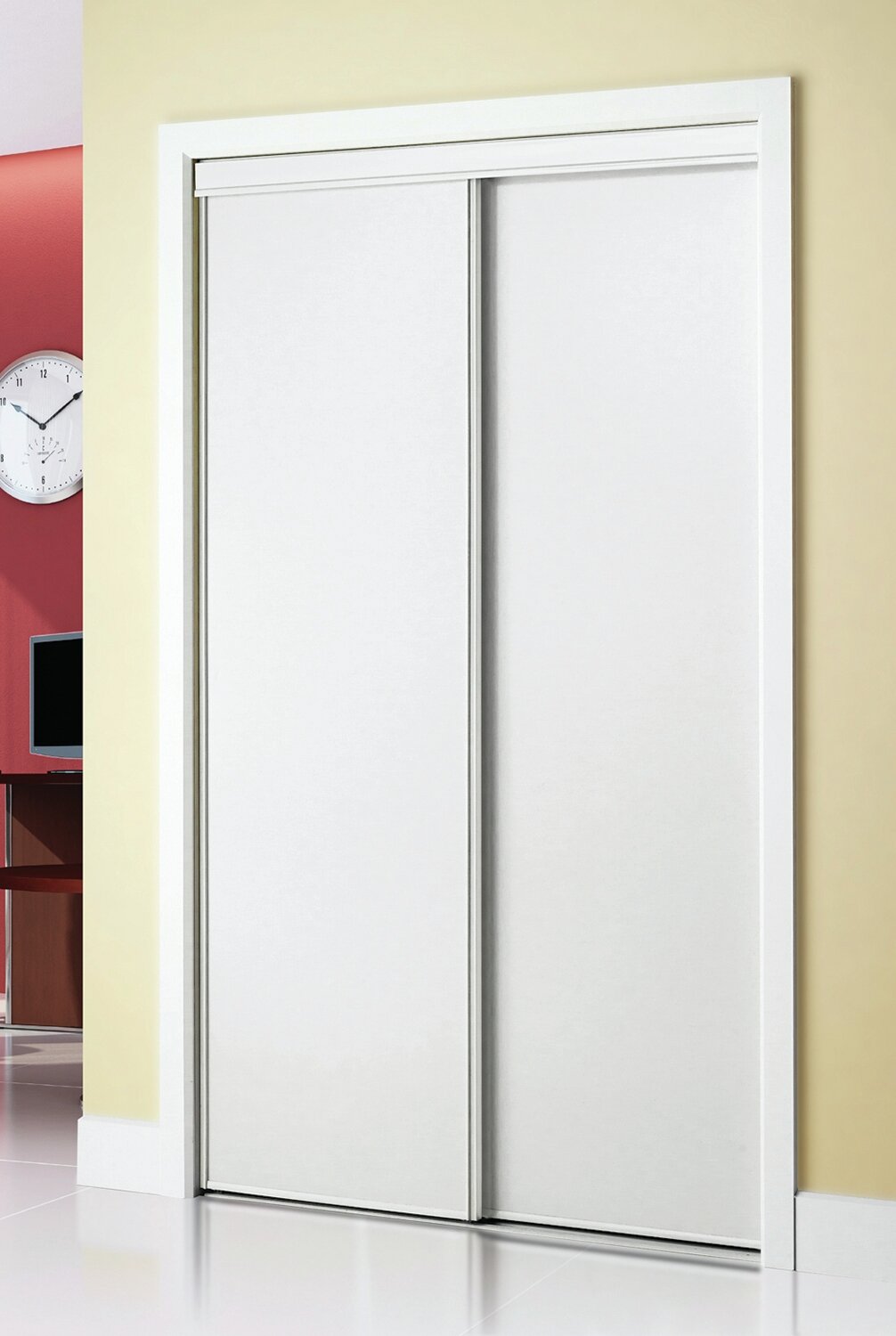 Modèle avec panneaux en fibre durcie; surface lisse prépeinte. Cadre en métal de 5/8 po offert en différents finis. Agencement de 2 à 4 portes