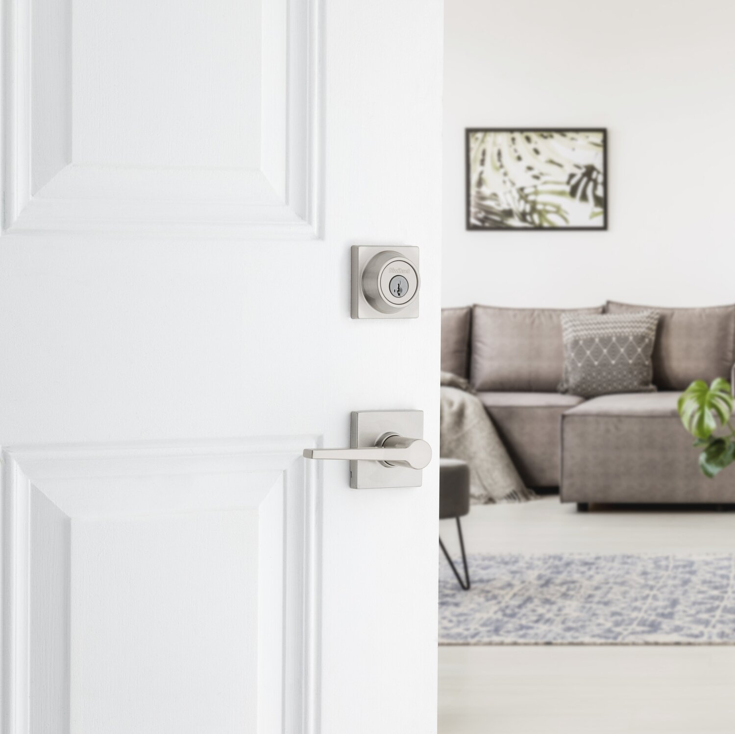 Levier droit de style classique contemporain avec rosette carré.  Disponible en fonction passage ul 20,  privé,  simple fictive et à clé.